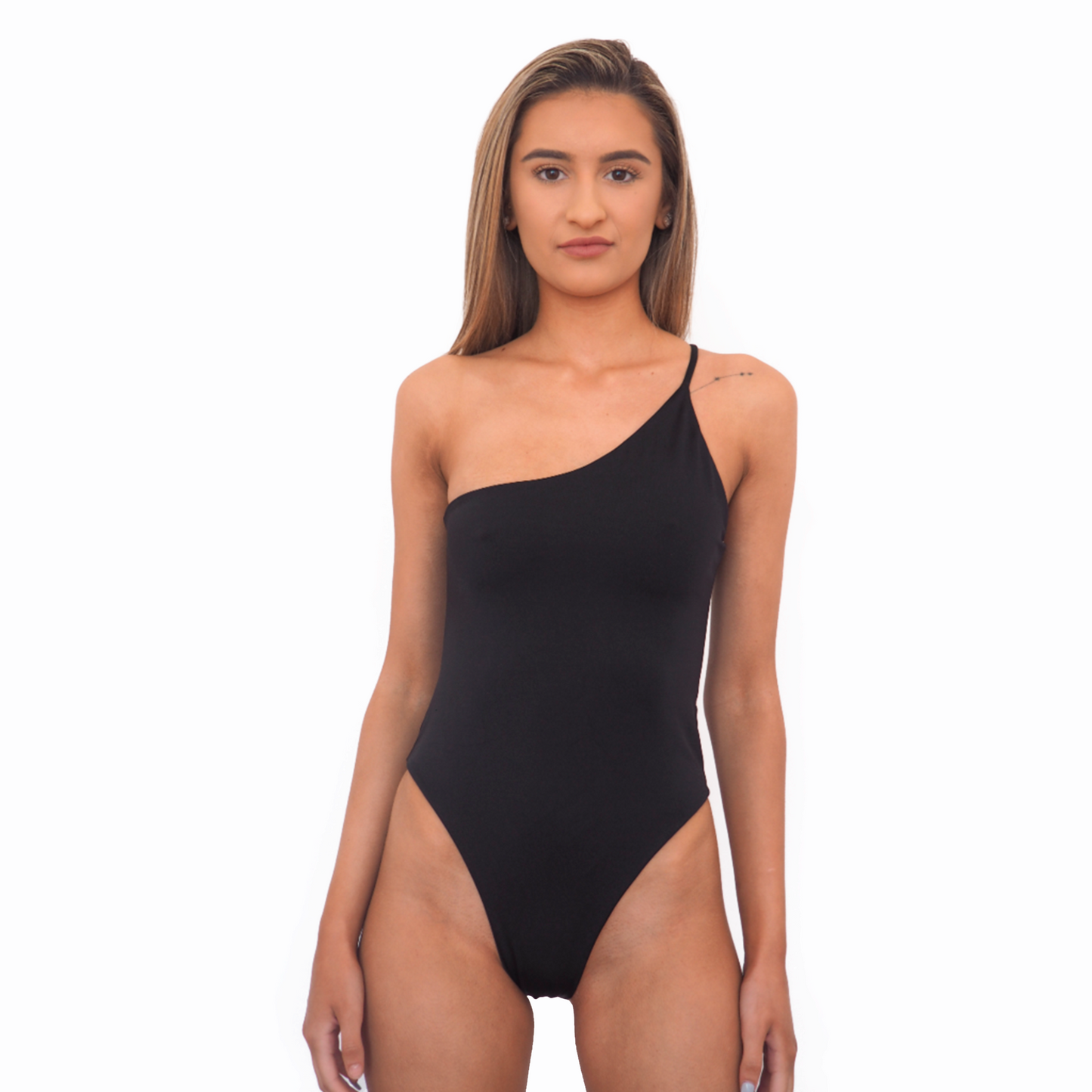 One shoulder, high cut, one piece swim suit screams 80's. This ultimate one piece captures your inner warrior, with adjustable shoulder strap and high cut leg it flatters, slims and elongates. Doubles as a body suit, wear it with you flirty shorts for the perfect resort look.